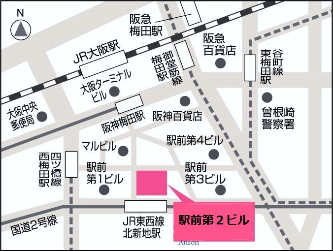 〒530-0001 大阪市北区梅田1-2-2-500 大阪駅前第2ビル5階